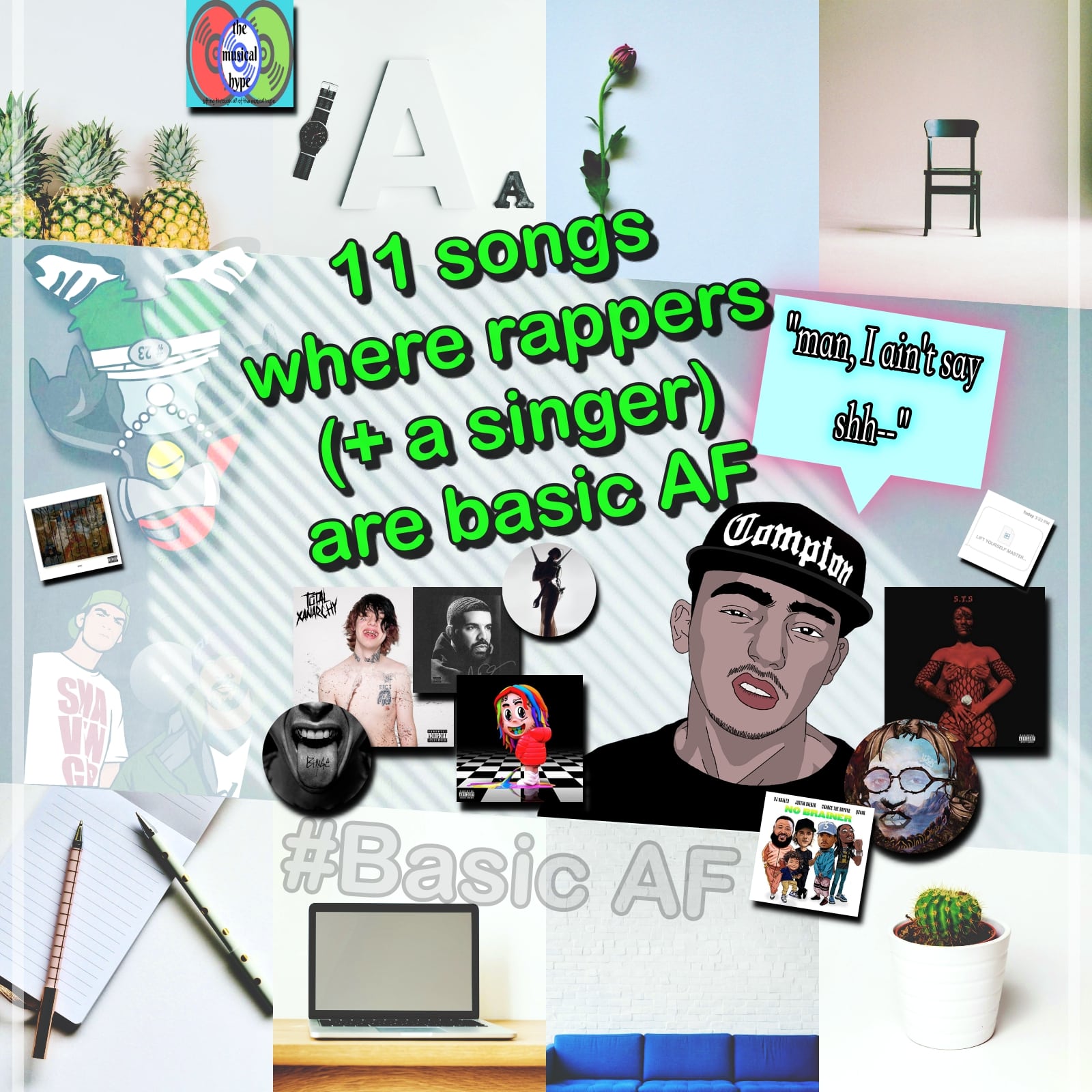 “11 Songs Where Rappers (And a Singer) Keep It Basic AF” features music courtesy of